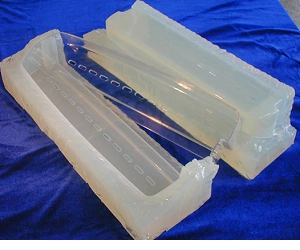 - Once the silicone has cured, the silicone is cut along the separation line, and the master part is removed from the mould